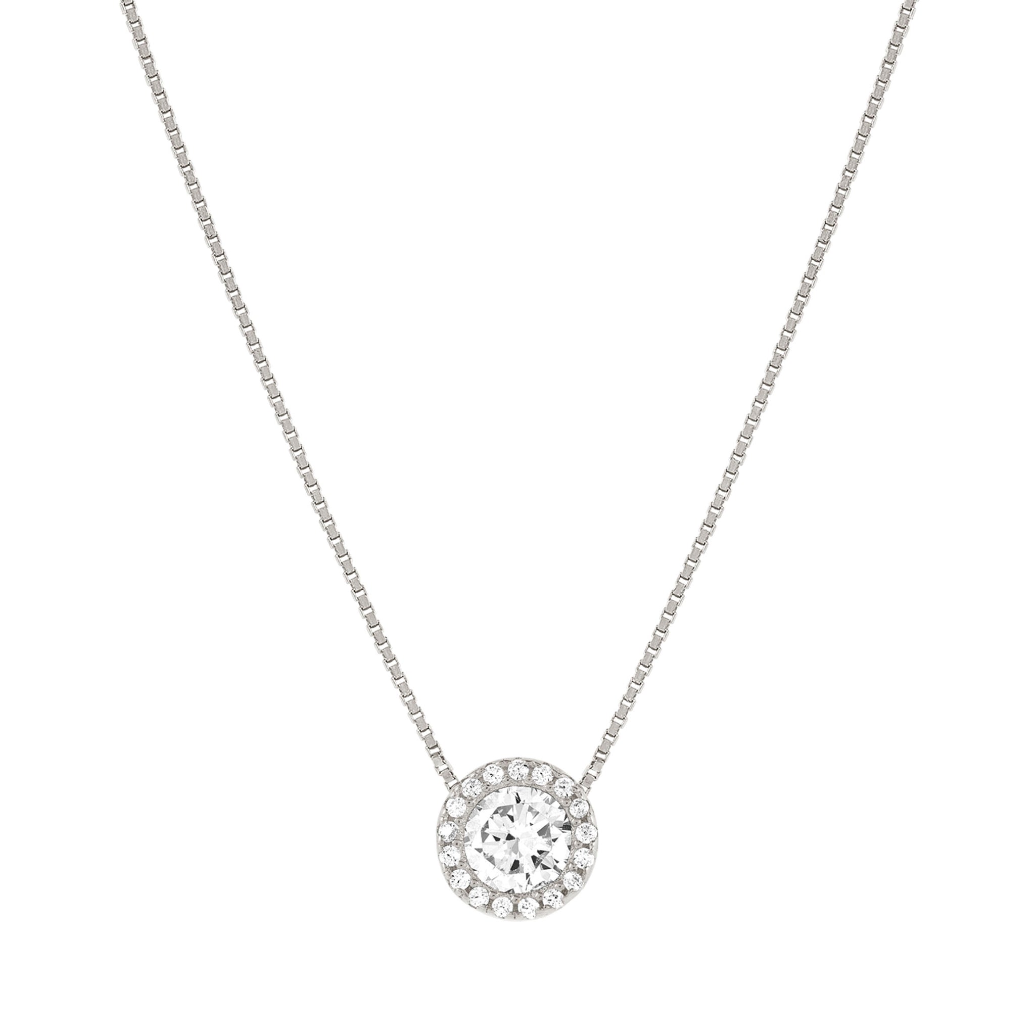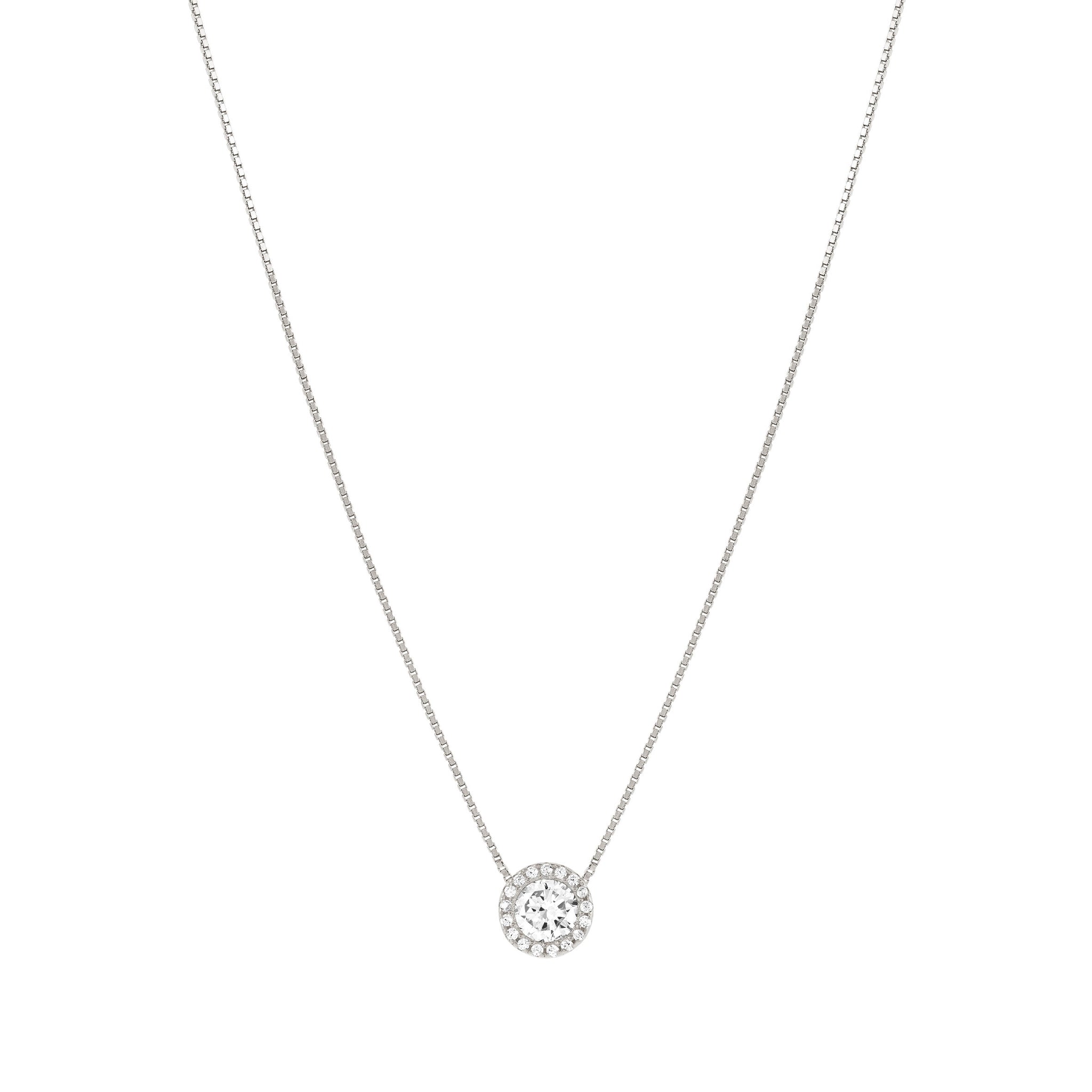 Elegantna srebrna verižica z osrednjim sijočim kamnom, obdanim z drobnimi kristali, ustvarja prefinjen in uravnotežen videz. Nežen lesk lepo poudari vrat ter doda pridih elegance tako vsakodnevnemu kot tudi bolj urejenemu slogu. Verižica je odlična izbira za vse, ki cenijo čist dizajn in diskretno razkošje.