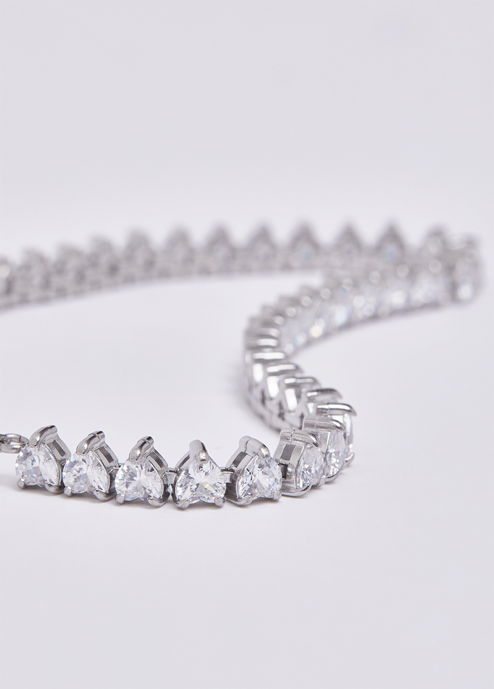 Elegantna ženska zapestnica iz jekla s čudovitimi cirkoni v obliki srčkov, ki ustvarjajo romantičen in bleščeč videz. Nežno oblikovani kamni poudarijo zapestje in dodajo pridih ženstvenosti, medtem ko nastavljiva dolžina omogoča udobno nošenje. Popolna izbira za posebne trenutke ali kot vsakodnevni simbol elegance.