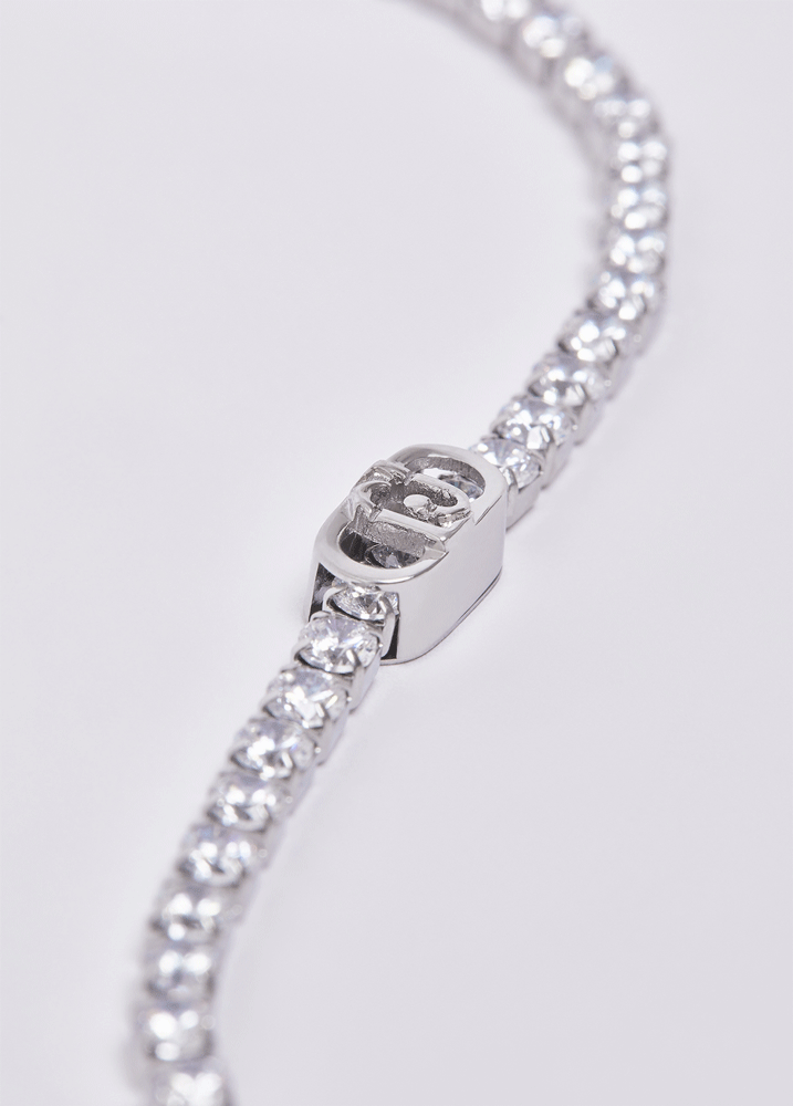 Elegantna ženska zapestnica iz jekla, okrašena z enakomernim nizom sijočih cirkonov, ki ustvarjajo brezčasen in prefinjen videz. Osrednji Liu Jo detajl doda subtilen poudarek, medtem ko nastavljiva dolžina omogoča popolno prileganje zapestju. Popolna izbira za vsakodnevno eleganco ali posebne priložnosti.